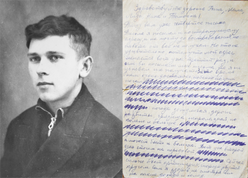 В семье бережно хранят четыре его письма: «Нахожусь в учебном подразделении, в пехоте. Строим землянки, расчищаем дорожки. В день дают 700 грамм хлеба. Раз в неделю кино про оборону Ленинграда или про Сталина. В части много бойцов из Пскова. Многие уже воюют. Думаю, через месяц на передовую. Пишите, как устроились. Кто вернулся. Я сыт, обут, одет».