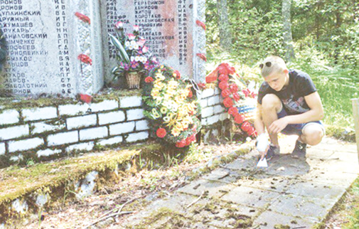 Например, они привели в порядок мемориал в урочище Лочкино Середкинской волости. Он установлен в 1990 году, там захоронены 456 человек, произвели уборку братской могилы у дороги в деревне Быстроникольское Карамышевской волости. Здесь покоятся около двух сотен воинов. На протяжении нескольких часов ребята отдирали мох от каменных плит, красили надгробия, убирали мемориал от мусора, листьев и веток. И это лишь небольшая часть того, что сделано.