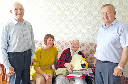 Поздравить ветерана с юбилеем пришли и. о. Главы Администрации Псковского района Наталья Федорова и глава Ядровской волости Олег Смирнов. Они вручили имениннице цветы и памятные полезные в хозяйстве подарки. Наталья Федорова зачитала поздравления от Президента РФ Владимира Путина и от Администрации района.