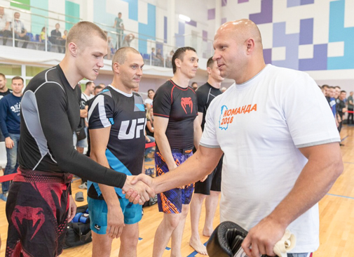 Федор Емельяненко провел мастер-класс в спортивном комплексе «Олимп» в Пскове. Приветствуя участников тренировки с легендой ММА, врио Губернатора Михаил Ведерников поздравил всех с Днем физкультурника. Глава региона отметил, что Администрация области в своей работе старается уделять большое внимание развитию спорту и рассказал о проектах, которые уже реализуются. Это «Лига дворового футбола», российский этап Чемпионата мира по воркауту, спортивный фестиваль «Земля Великих Побед».