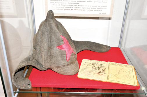 Выставка получилась любопытная. Перед посетителями открываются забытые страницы советской эпохи, то лучшее, чем мы должны гордиться, но в угоду политической конъюнктуре должны были забыть. Экспозиция сделана, исходя из хронологической цепочки, а не на раритетах: есть на что посмотреть. Удивительные, совсем юные лица смотрят на нас с любительских фото. Вот они - первые комсомольцы... Павел Барканов, вступивший в РКСМ 26 декабря 1918 года. Рядом -будёновка. Т огда у псковских комсомольцев задачей № 1 была защита с оружием в руках революции. Виктор Канер - его заявление берёт за живое: «Настаиваю на отправке на польский фронт. Считаю, что принесу больше пользы, отправив на тот свет нескольких легионеров, нежели копаясь в делах секретариата РКСМ». А вот заметки из газет. В них говорится о том, как комсомольцы помогают пахать землю, восстанавливают мочила для обработки льна. Впечатляет агитация 30-х годов. На плакатах написано: «Будем достойными сыновьями и дочерями нашей великой партии Ленина - Сталина», «Каждый комсомолец должен освоить военную специальность». На одном из фото комсомольцы завода «Выдвиженец» изучают устройство винтовки. Война. Окровавленный комсомольский билет Сергея Калёного, пробитый осколком. Он был ранен при освобождении Пскова с 22 на 23 июля 1944 года.