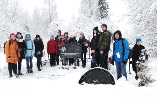 Подкравшийся грипп, правда, подкосил численный состав отрядов: кроме руководителей-взрослых, на общий маршрут вышли всего 18 ребят. Лыжной трассы тоже не случилось: накануне - оттепель, в день основного перехода - большой снегопад. Но погодные трудности не стали препятствием для упорных. По словам одного из кураторов, бессменного руководителя туристического кружка Верхолинской основной общеобразовательной школы Александра Григорьева, непогода не ослабила энтузиазма и интереса ребят к походу. Вернулись все здоровыми, довольными собой и обогащенными новыми знаниями о Великой Отечественной войне. В деревне Череха ребята расчищали воинское захоронение и знакомились с историей прорыва «Линии «Пантеры». Следующим памятником на их маршруте стало захоронение неизвестного летчика в лесу за деревней Глоты. На месте массового расстрела псковичей еще сохранились контуры одного из карьеров. Почтив память погибших, ребята двинулись в путь вдоль берега вверх по течению Великой. Идти сквозь вьюгу, по мокрому снегу было очень тяжело, но рассказы о тяжелых боях от трудностей становились лишь понятнее. Мимо деревни Ерусалимки поднялись до деревни Паничьи Горки, полюбовались через реку на Выбуты, вспомнили княгиню Ольгу (с какого она все же берега родом?), а сваи - остатки немецкого моста - вновь вернули к событиям Отечественной. Место легендарного танкового сражения, в котором 13 советских машин сдерживали почти троекратно превосходившую армаду противника, и рассказ руководителя помогли представить школьникам картину боя.