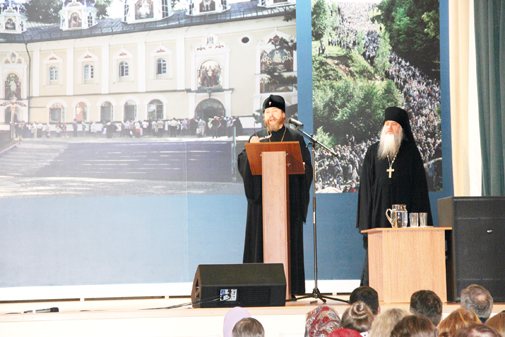 Открыл чтения митрополит Псковский и Порховский, настоятель Псково-Печерской обители архимандрит Тихон (Шевкунов). Прозвучали приветствия собравшимся от лица руководителей области и управления образования, руководства Печорского района, Псковского госуниверситета. Слова первого заместителя главы Администрации Псковской области Веры Емельяновой о том, что свидетельствовать о Христе в современном мире нужно христианской жизнью, делами любви и милосердия, рефреном звучали в речи Владыки Тихона. Он говорил об искусстве достучаться до детских сердец, о роли православного педагога в формировании личности, о духовно-воспитательной роли русской классической литературы. Владыка анонсировал подготовленную монастырем к изданию книгу «о путях веры и неверия великих людей» (Суворов, Шекспир, Ньютон, Достоевский, Гоголь, Коперник, Пушкин и многие другие) и расска зал о второй, более расширенной в плане историко-биографического материала книге, которая кого-то познакомит с сокровенным духовным опытом великих людей, а для кого-то станет научным свидетельством в пользу Христа.