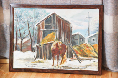 Нет, в школе, конечно, любила рисовать и все время делала стенгазеты, но - не более того. А дальше началась жизнь. С мужем-охотоведом долгое время прожили за Полярным кругом, в поселке Умба на берегу Белого моря. После смерти отца вернулись в родную деревню, начали обживаться заново на старом месте. И неожиданно для себя Валентина стала наследницей инструментов известного художника Константина Запольского, проживавшего некогда в их деревне. Просто проходила мимо, когда выносили ящики с кистями, холстами и красками из старого дома на помойку, и вид осиротевших кисточек зацепил так сильно, что совершенно неожиданно для себя она попросила отдать это ей. А, принеся домой, развернула холст, достала краски и кисти, и стала пробовать. Несмотря на то, что масляные краски в ее руках оказались впервые в жизни, пейзаж получился. Потом - еще один. Сельские улицы, размытые, с лужами дороги, покосившиеся сараи, лошади...