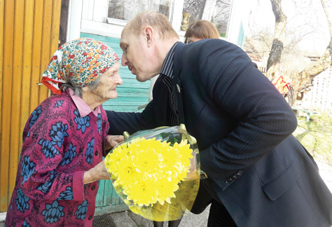Валентина Алексеева встретила гостей на пороге своего дома в селе Середка и немного удивилась такому вниманию к себе. Андрей Неофитов поблагодарил ее за мужество и стойкость в трудное военное время, за добросовестную работу на всех участках, где пришлось трудиться. Он передал ей именные поздравления от руководителей области и района, отметив, что ветераны у нас на особом счету, вручил цветы с пожеланием доброго здоровья, благополучия и долголетия.