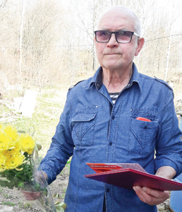 На фоне природы прошла и церемония поздравления ветерана. В январе этого года в составе делегации от Псковской области он принимал участие в торжественных мероприятиях, посвященных 75-летию полного освобождения Ленинграда от фашистской блокады.
