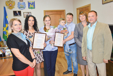 На торжественное мероприятие молодая мама Виктория Степанова пришла с мужем Алексеем и старшим сыном Саввой. Крошка Елизавета, родившаяся 8 мая, тоже присутствовала на столь ответственном мероприятии, но участия в нём не принимала. Причина оказалась уважительной - малышка мирно спала в коляске.