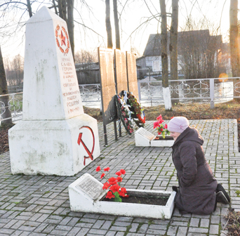 Именно таким Валентина Александровна и представляла себе братское захоронение на псковской земле в деревне Рябово, в котором покоятся 588 бойцов. И всё вокруг - бескрайние поля, перелески, соседние деревни, серенькое, низкое псковское небо - ей показалось будто знакомым. Пожилая женщина упала на колени со словами: «Спасибо тебе, мой дядя, все наши солдаты, за то, что я живу на белом свете. Низкий вам поклон. Мы тебя, дорогой ты наш человек, Михаил Григорьевич, помним и любим».