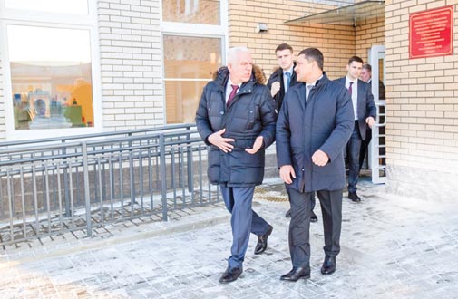 В новом детском саду «Ягодка» на 270 мест Александр Гуцан и Михаил Ведерников осмотрели ясельные группы, пищеблок, медкабинет, музыкальный и спортивный залы. Это одно из самых больших дошкольных учреждений региона возведено в рамках нацпроекта «Демография» в активно развивающемся микрорайоне Борисовичи. Полпреду показали расположенную рядом площадку, на которой в 2021 году планируется открыть новую школу на 1350 мест. В настоящее время уже ведется привязка типового проекта к местности.