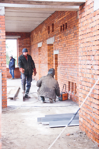 Главный инженер подрядной организации Александр Монин рассказал, что работы идут динамично, строго по графику, местами - с небольшим опережением. На объекте сегодня заняты порядка 40 человек: 4 бригады каменщиков, плотники, бетонщики, сантехники и электрики. Как только завершится кладка стен, на смену каменщикам будут привлечены другие специалисты.