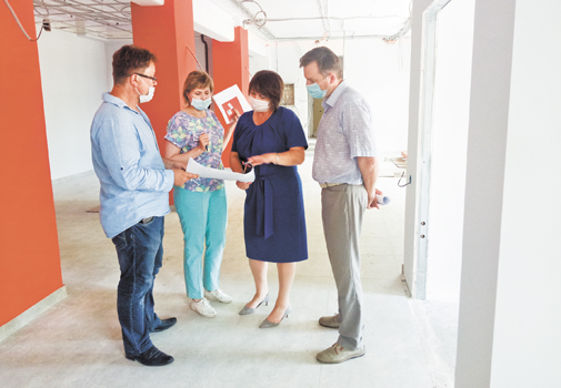Особое внимание - маломобильным группам граждан и пожилым людям: появятся пандусы, удобные широкие двери. Запланирована реконструкция туалетных комнат, там даже будет горячая вода. Горячего водоснабжения при постройке здания не предусмотрели, будут установлены бойлеры.