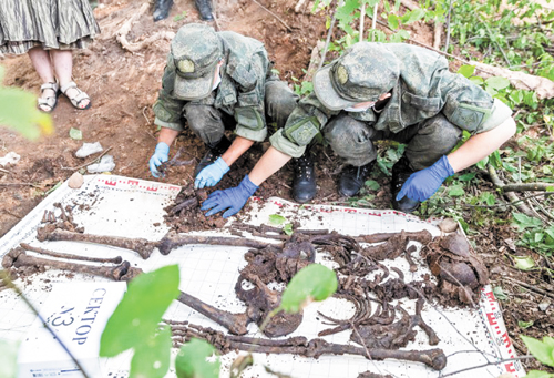 В настоящее время поисковые работы завершаются - эксгумировали останки последних двух человек. Члены поискового отряда бережно достали их из ям, разложили на баннере-трафарете, после чего упаковали в специальные пакеты. Далее останки будут направлены в Следственное управление Следственного комитета РФ по Псковской области на экспертизу.