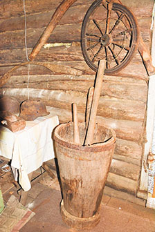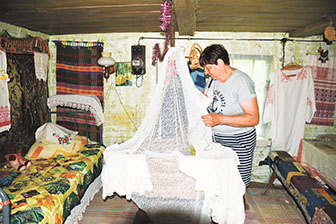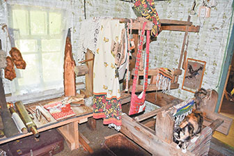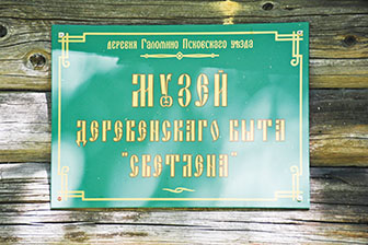 Около 15 лет назад Светлана Пожар, переехавшая сюда из Санкт-Петербурга, основала музей и принимает в нем посетителей. Первоначально небольшой, старый деревенский дом - классическую русскую избу - хотела превратить в библиотеку, но читающих в округе оказалось немного, и от затеи пришлось отказаться. Тогда решила открыть музей, стала разъезжать по округе -собирать экспонаты. Предметы старины были уже не нужны хозяевам, и их выкидывали. Как-то раз Светлана Афанасьевна ехала на велосипеде, и попался ей навстречу мужчина с прялкой в руках - нес станок на костер. Он с удовольствием отдал старинную вещь в музей. Сегодня прялок в музее несколько, и все отличаются по конструкции.