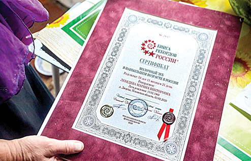 Знакомая Марины Лебедевой, узнав историю про молочный зуб, посоветовала зарегистрироваться в Книге рекордов России. «С меня не убудет», - подумала тогда Марина Викторовна и последовала совету, отправив заявку. Её рассматривала специальная комиссия из пяти человек. Наличие молочного зуба подтвердилось, и «рекорд» Марины в 2019 году внесли в Книгу. Женщина получила официальную грамоту с печатями и значок с надписью «Книга рекордов России».